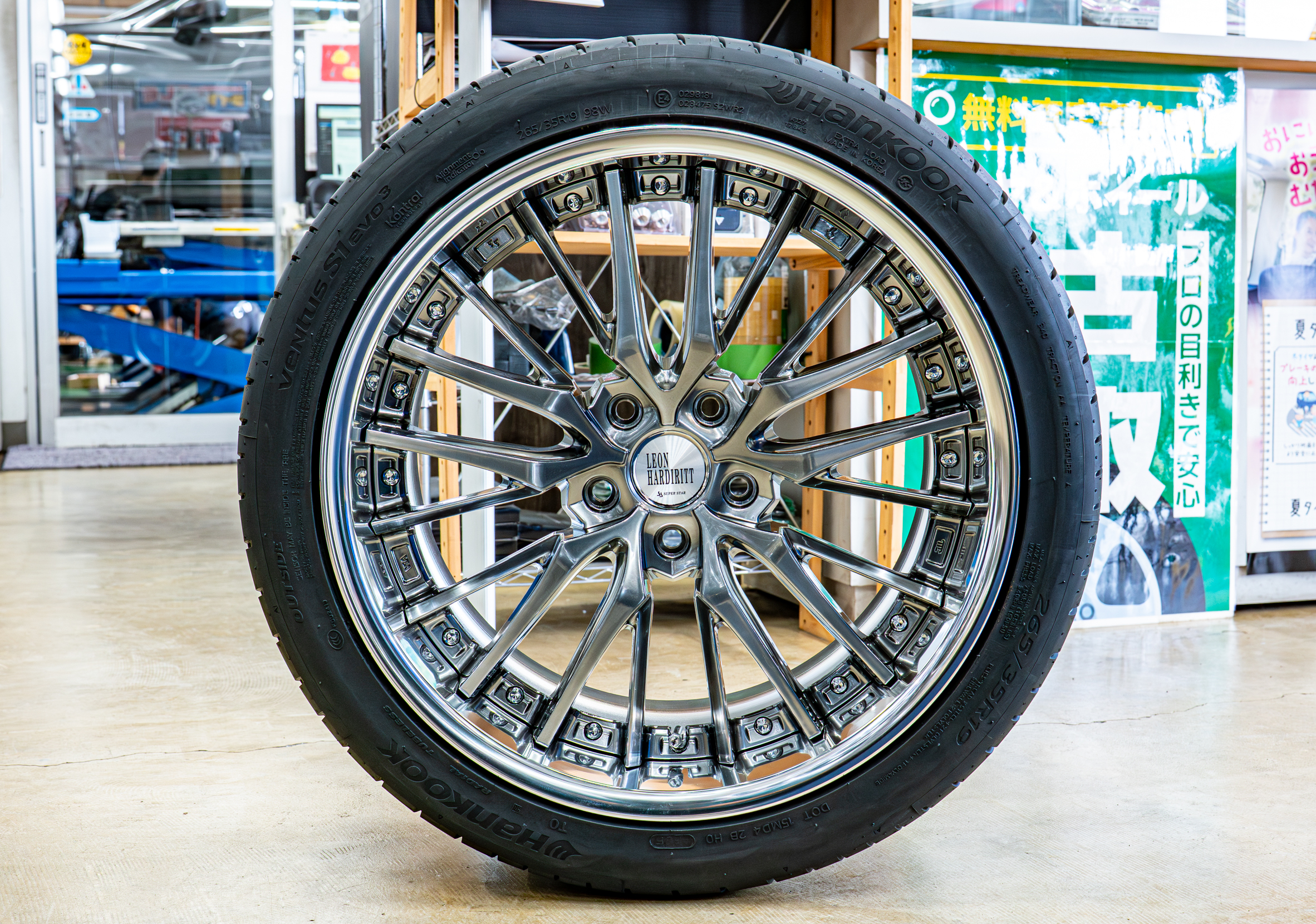 タイヤローテーションを優先するなら通しサイズにする方法もありますが、今回は見た目優先。 リアにワイド感を出すことで、スタイリッシュな迫力が生まれました。